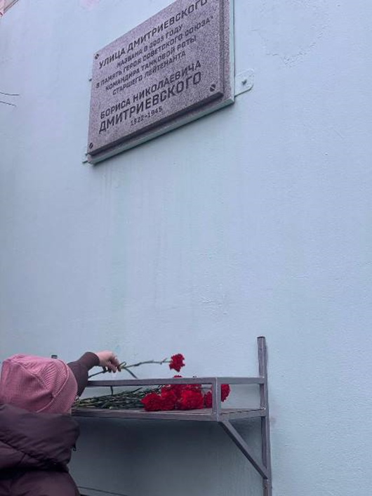 Обучающиеся УК 2 возложили красные гвоздики к мемориальной доске Героя СССР Бориса Николаевича Дмитриевского.